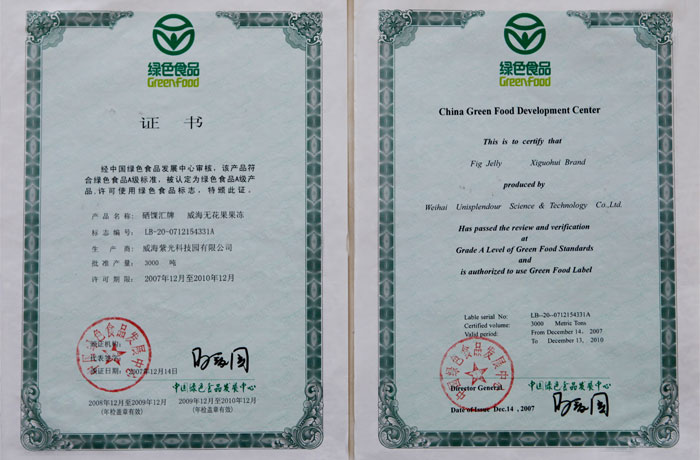 威海无花果果冻证书