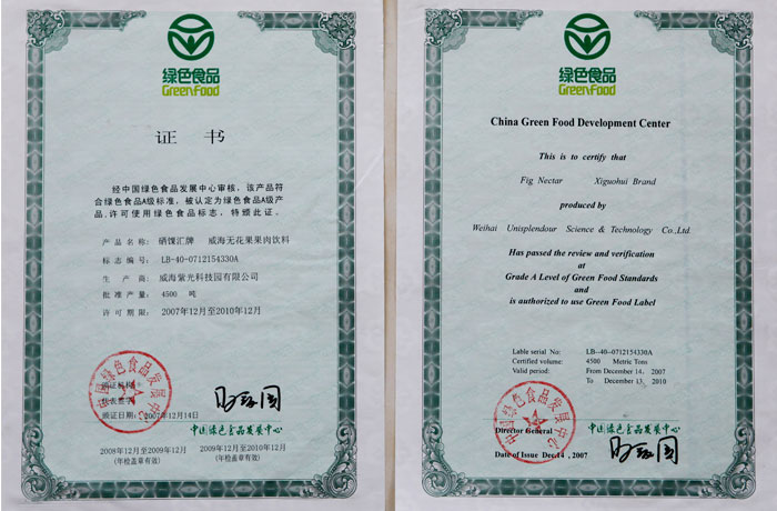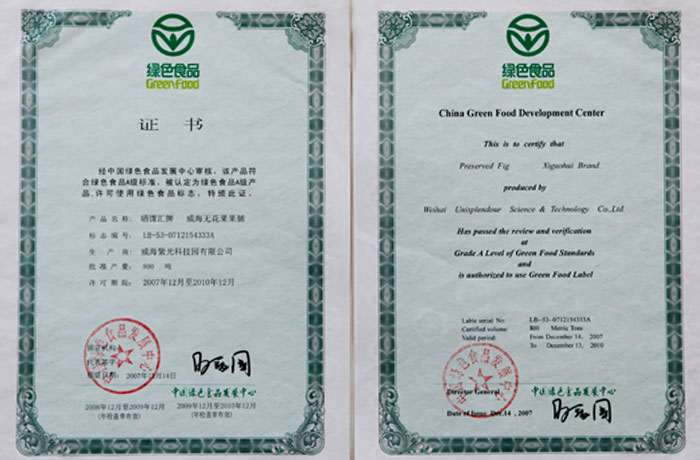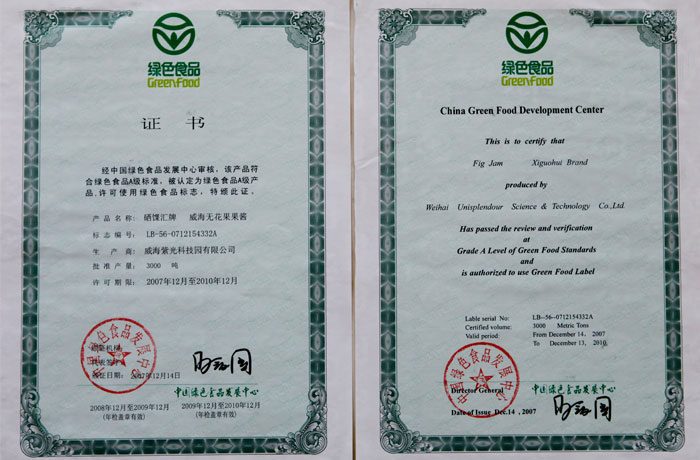 威海无花果果脯证书